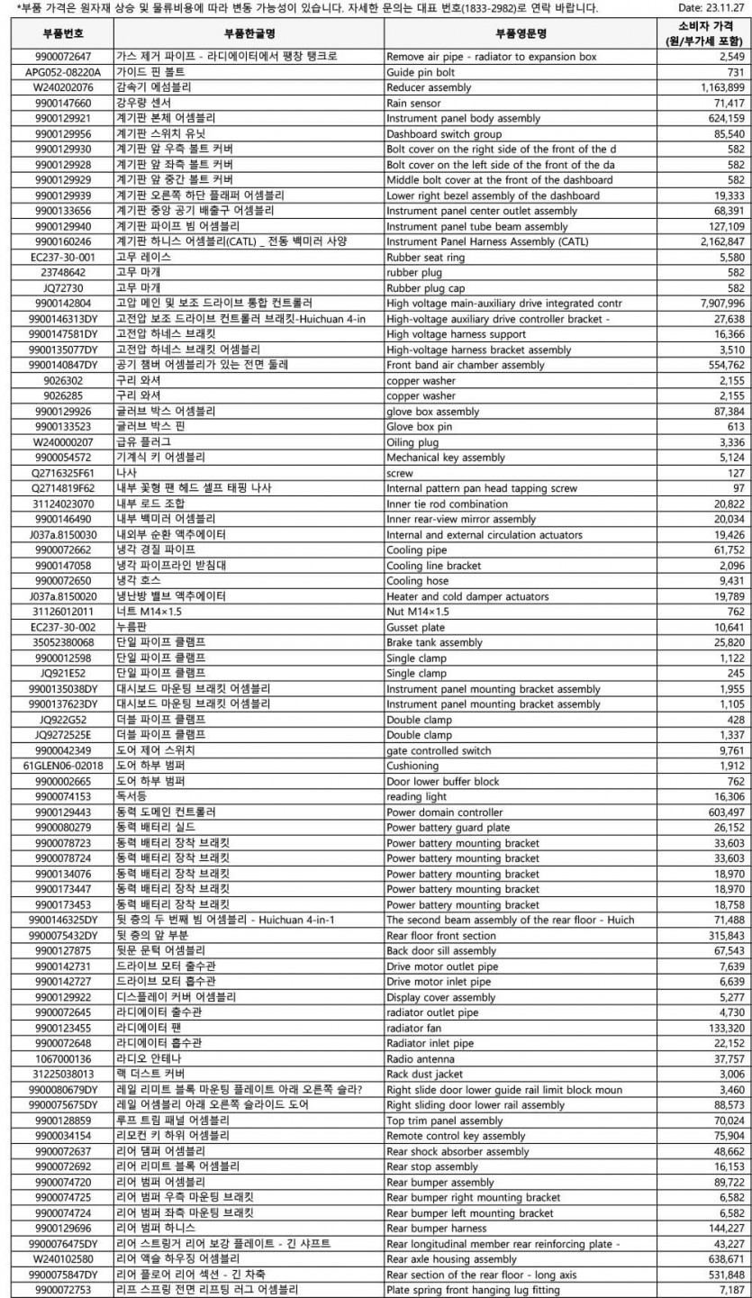 부품정보 및 소비자 가격 > 메뉴얼 다운로드